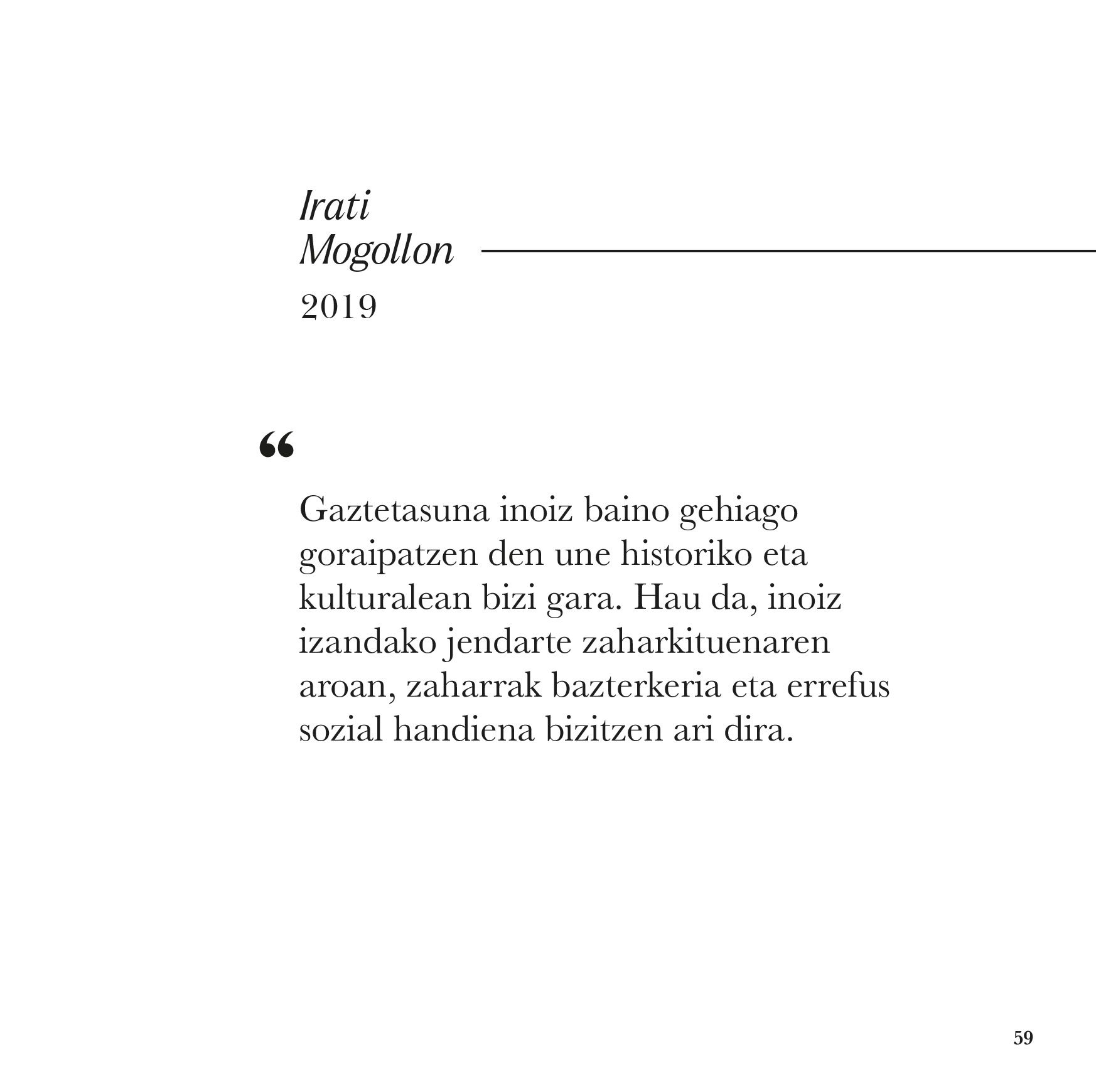 «Gaztetasuna inoiz baino gehiago goraipatzen den une historiko eta kulturalean bizi gara. Hau da, inoiz ...