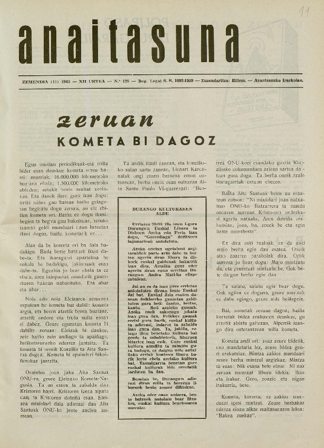 «Abadea ta deabrua». Anaitasuna 1965-05: 6. Ipuina - Artikuluak