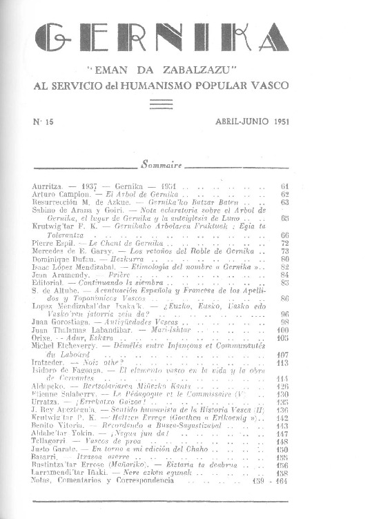 «Eriotzaren Sagarra». Gernika 1951-01/03: 53. Ipuina - Artikuluak