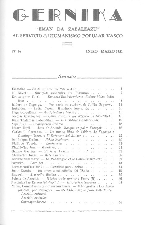 «Eiztaria ta deabrua». Gernika 1951-04/06: 156-157. Ipuina - Artikuluak