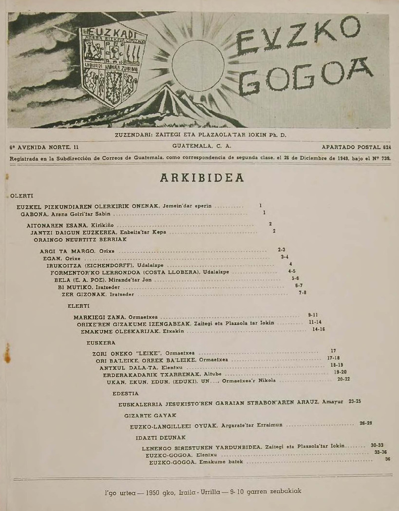 «Euzko-Gastedija'n "E.A.-B"ren lendakarijaren euzkel-itxeikixuna». Aberri. Jaun-goikua eta Lagi-Zarra 1922-10-21: 1. Sabin Arana. Euzko Alderdi Jeltzalea - Artikuluak