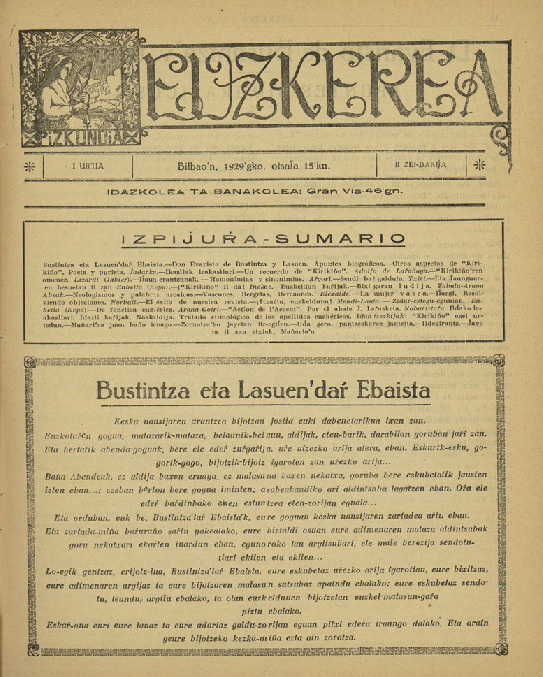 «Ikasliak irakasliari». Euzkerea 1929-02-15: 21. Euskara eta euskal haurren hezkuntza - Artikuluak