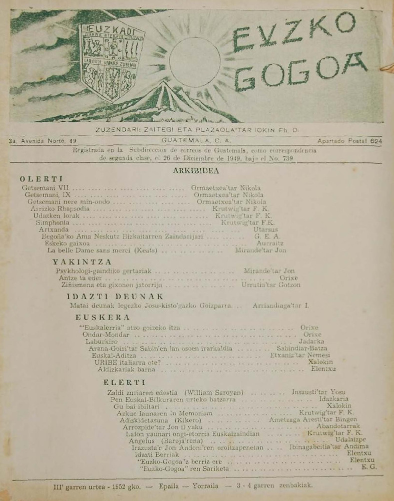 «Artxanda». Euzko-Gogoa 1952: 4. Olerkia - Artikuluak