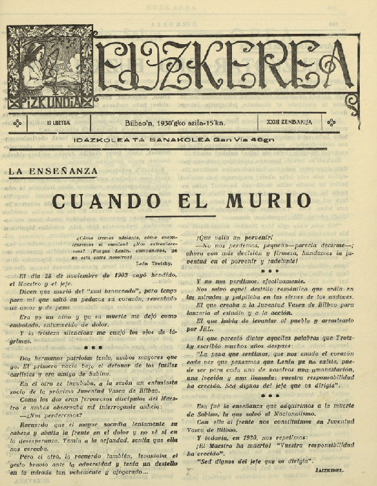 «Ikastoletan bi elez». Euzkerea 1930-11-15: 505. Euskara gizartean - Artikuluak