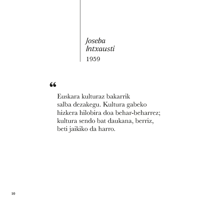 «Hizkuntza dugu munduaren gure neurria, gure lehen eremu kultural librea; hizkuntzari eutsi nahi soilarekin kontribuzio ...