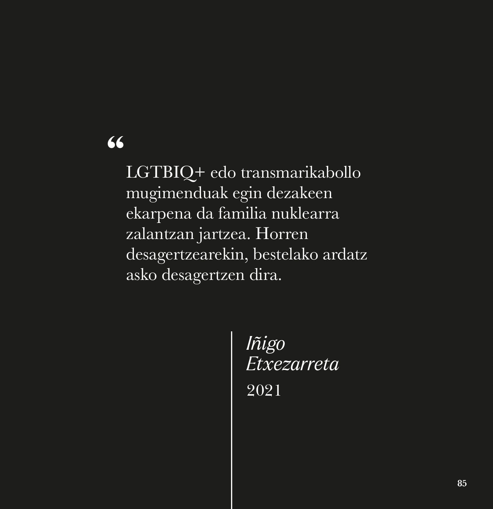 «LGTBIQ+ edo transmarikabollo mugimenduak egin dezakeen ekarpena da familia nuklearra zalantzan jartzea. Horren desagertzearekin, bestelako ...