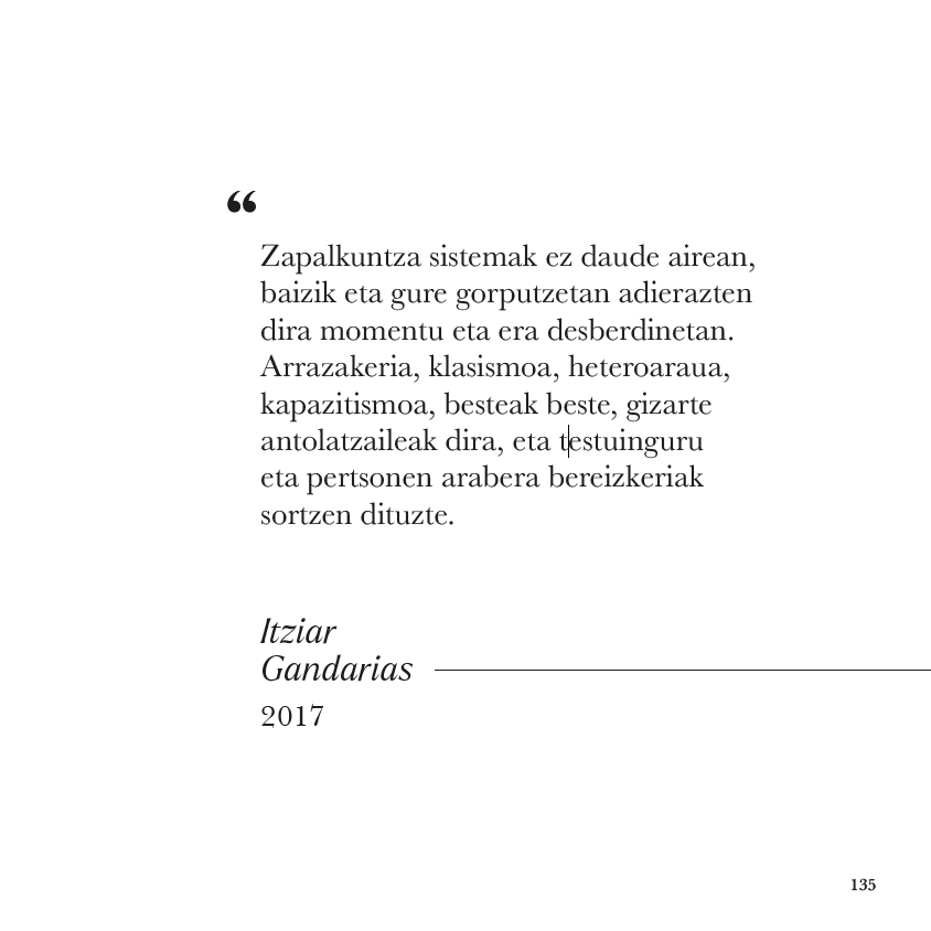 «Zapalkuntza sistemak ez daude airean, baizik eta gure gorputzetan adierazten dira momentu eta era desberdinetan. ...