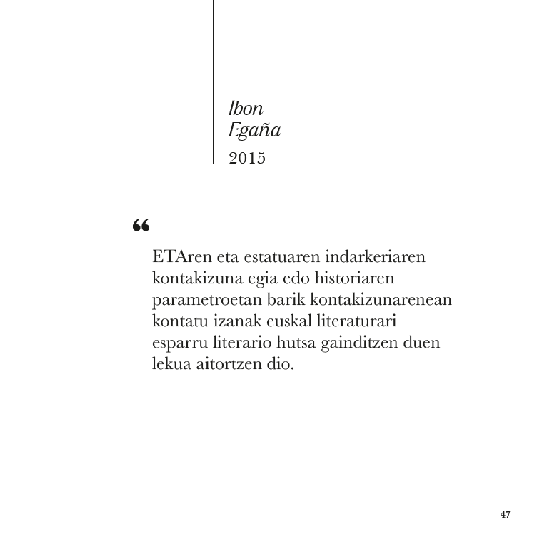 «ETAren eta estatuaren indarkeriaren kontakizuna egia edo historiaren parametroetan barik kontakizunarenean kontatu izanak euskal literaturari ...