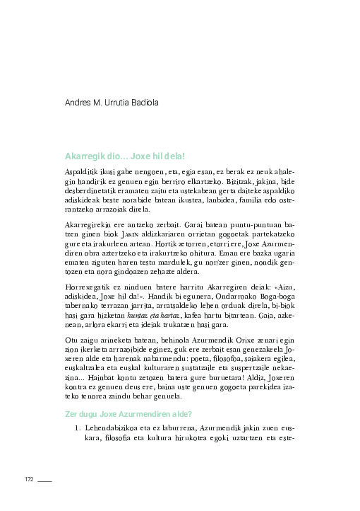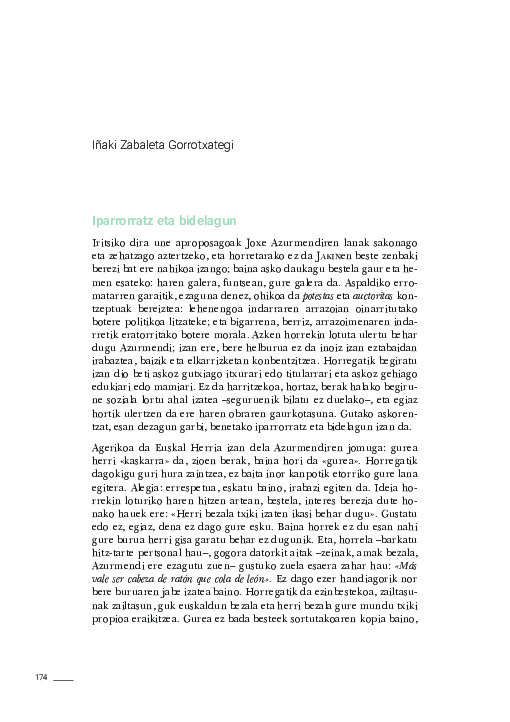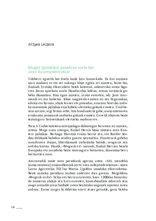 Mugaz (gaindiko) paradoxa sorta bat Joxe Azurmendirentzat