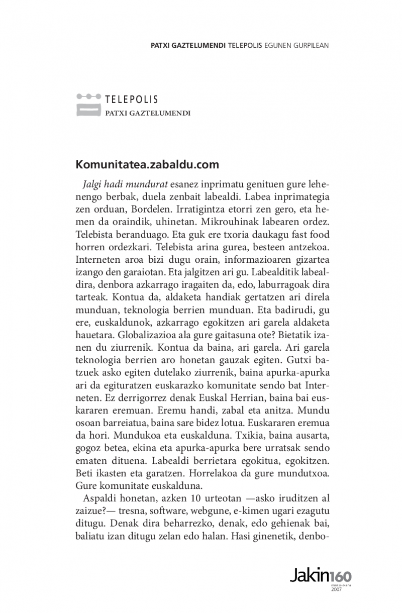 Hemen duzu Jakinen ondare guztia. Eta gehiago. Euskal kultura elikatzen eta biziberritzen jarraitzeko berritu dugu Jakin. Eta, orain arte bezala, Jakinen hartzaileok izango zarete gure sostengua.